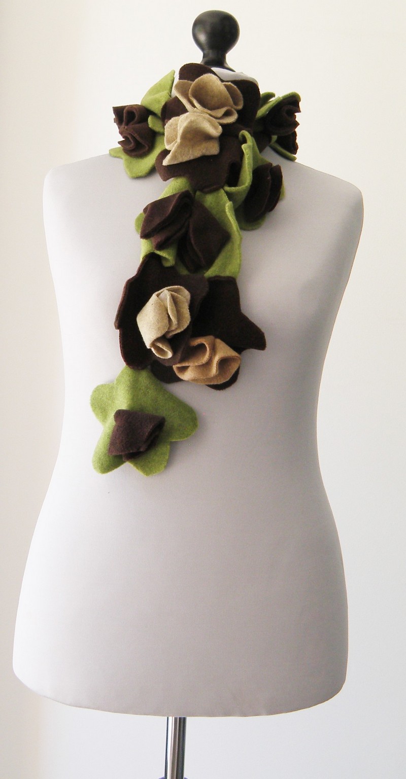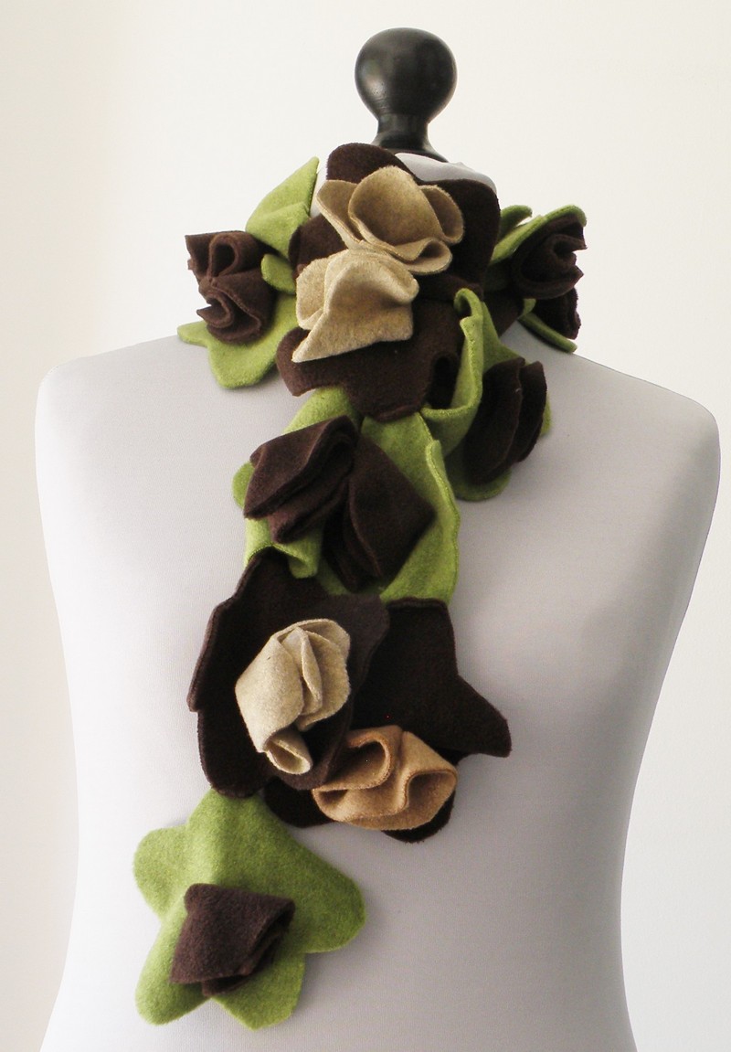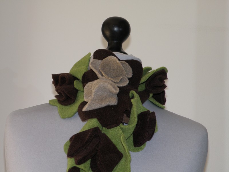 Écharpe de fleurs coupées (de tailles  différentes) et cousus entre elles, en polaire velours.