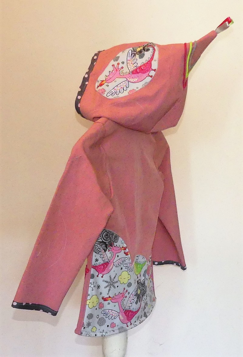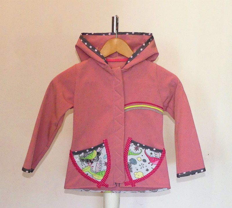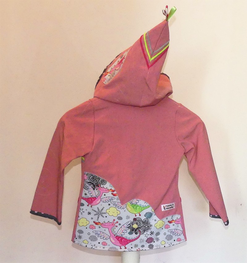 Veste à capuche lutin en Softshell rose clair chiné, tissu technique étant déperlant, respirant et procure une isolation thermique car micro polaire à l’intérieur pour la mi-saison.