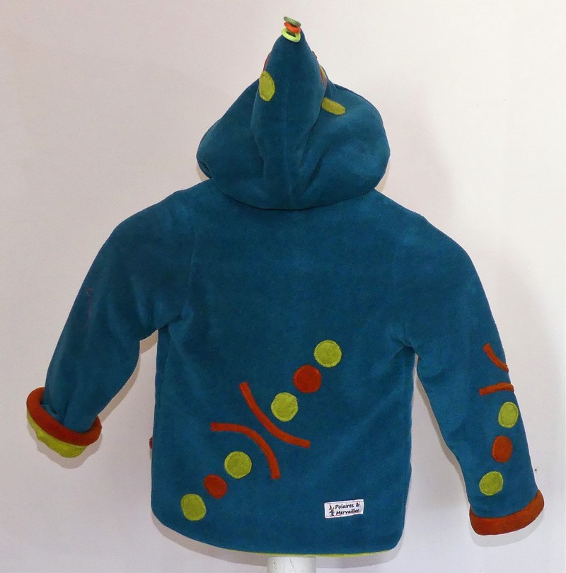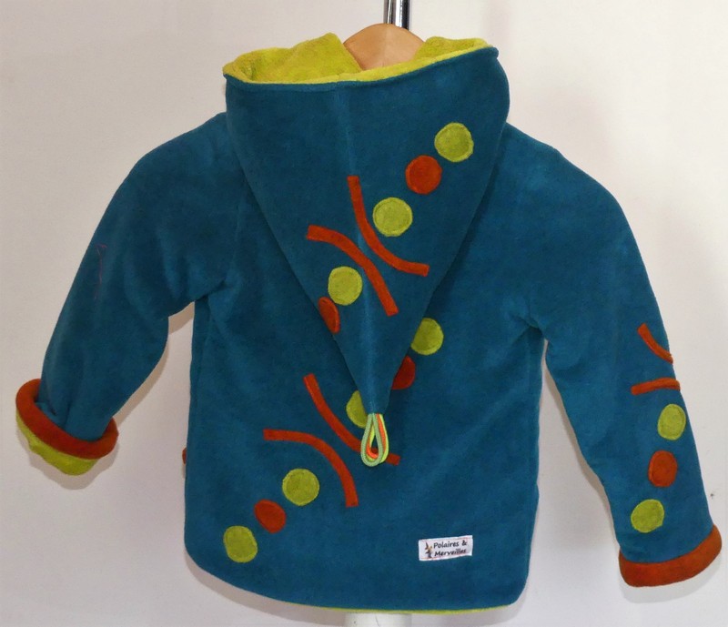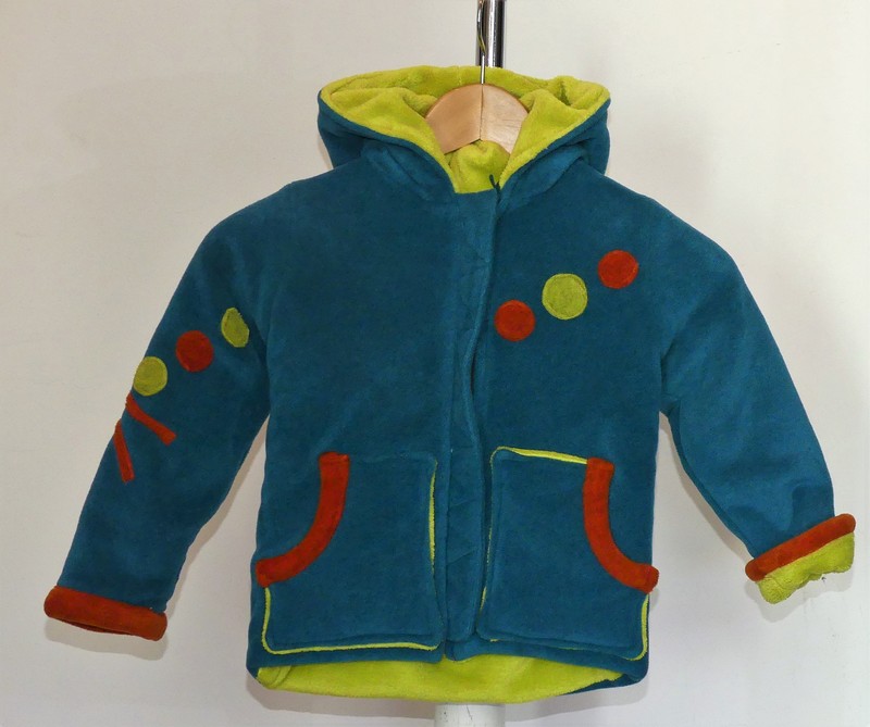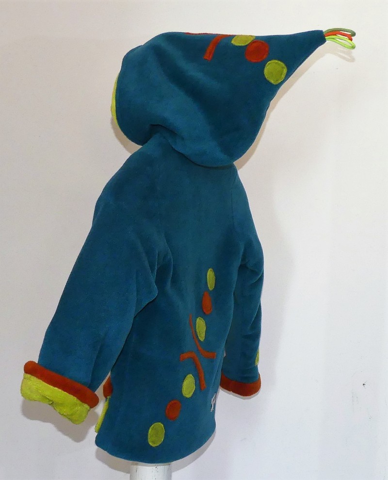 Veste lutin en polaire velours sea blue entièrement doublée tissu doudou vert anis ultra chaude un vrai manteau, doux et confortable moelleux a souhait !